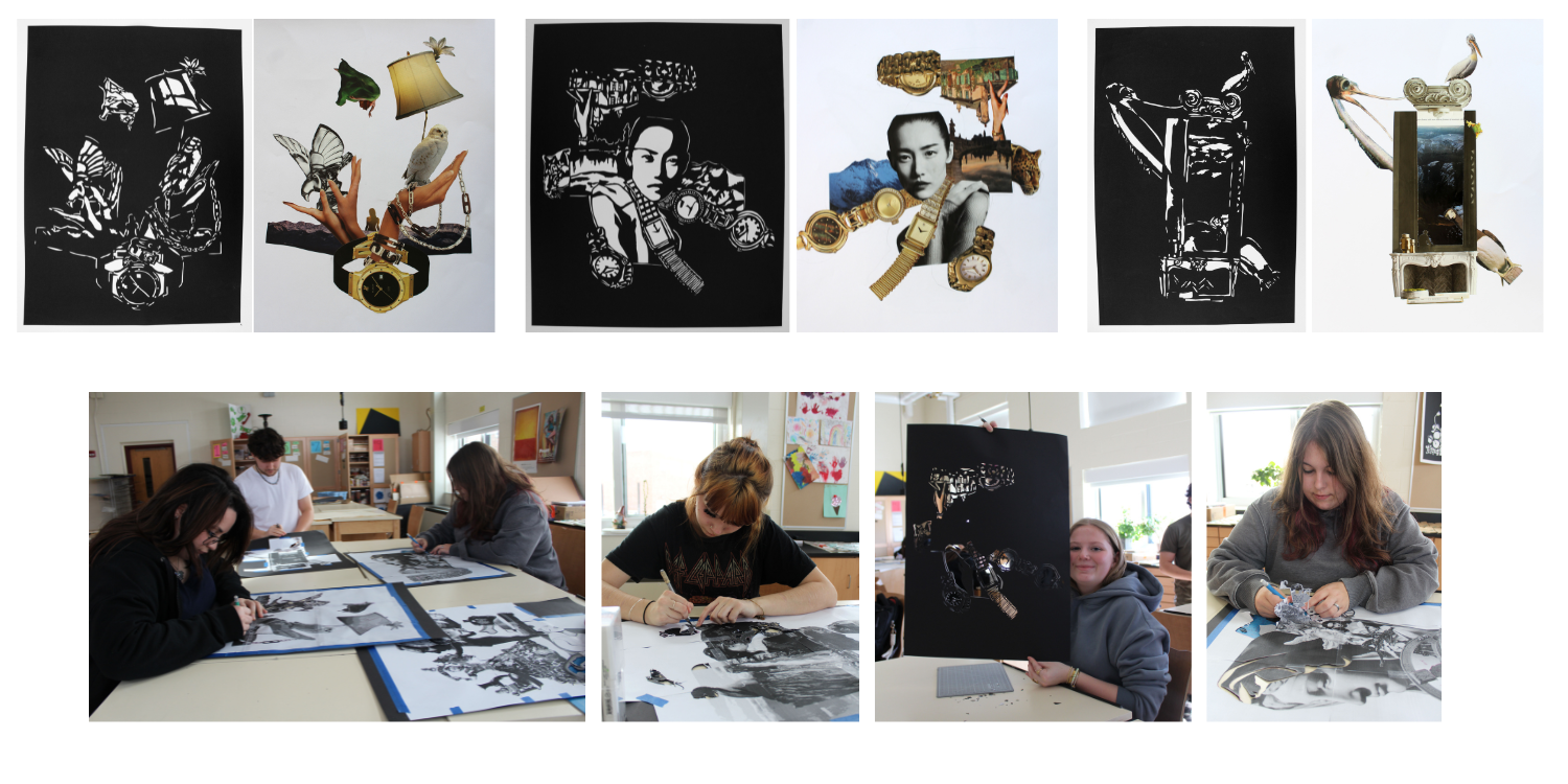 The Advanced Studio Art students created a composition made from images that they found intriguing and collected. The students looked at Surrealist artists' work for inspiration and for ideas on how to put images together that don't make sense.